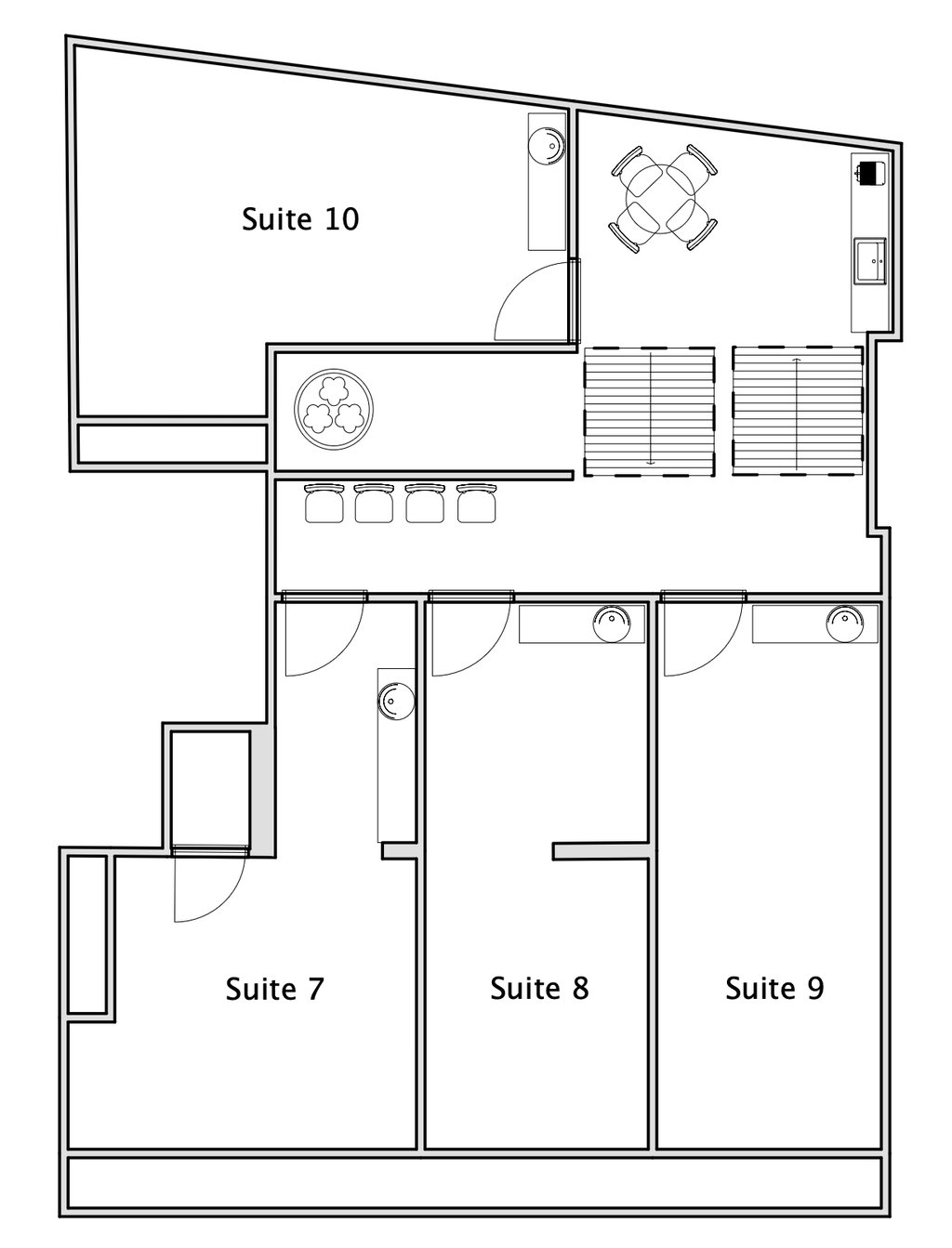 Suite 7 ca. 18m² €695,- per maand all-in (ca. €24,- per dag).